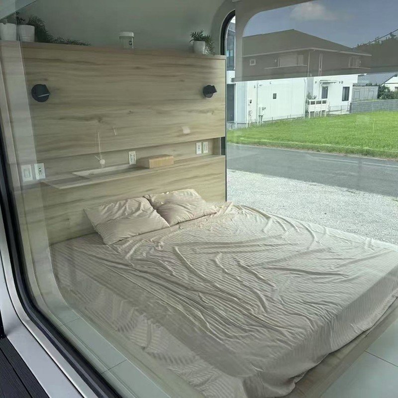Equipped with an IoT-based smart control system, the pod enables remote management of lighting, temperature, humidity, and security devices. Tech-friendly features like voice assistants and wireless charging panels, along with customizable scene modes (e.g., “Sleep Mode,” “Meeting Mode”), create a convenient and modern living environment.